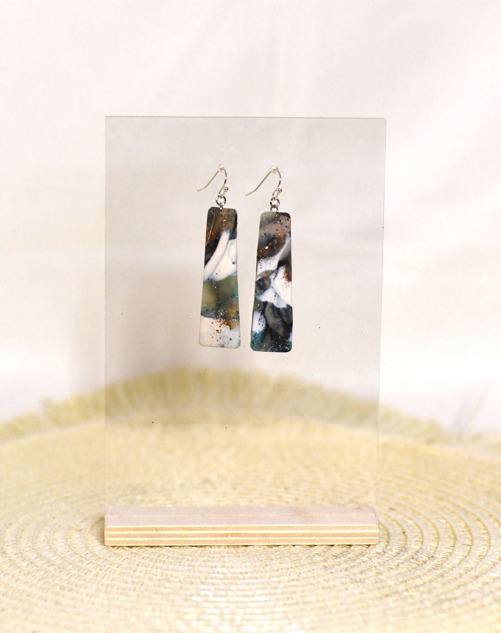 Emma ๐ Marmer-look oorbellen in oceaantinten โ polymeerklei (5,5 ร 1,5 cm)