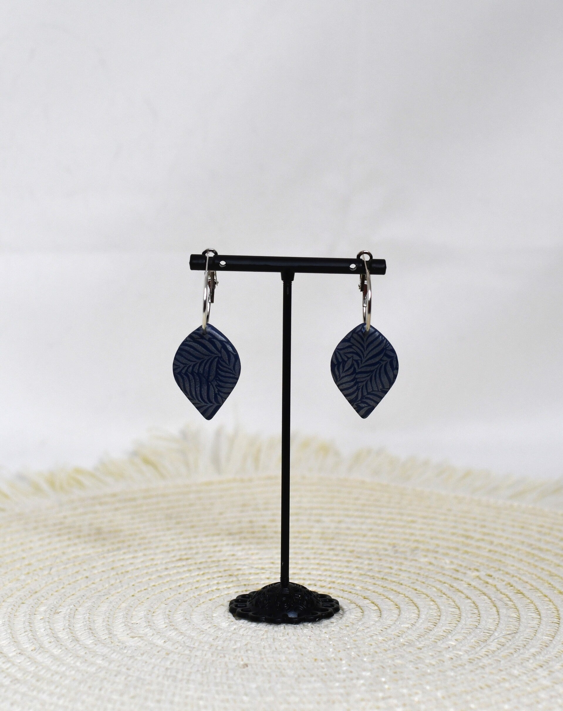 Met deze oorbellen straal je klasse en zelfvertrouwen uit. Ze zijn handgemaakt uit polymeerklei, diep koningsblauw van kleur en voorzien van een verfijnd bladmotief in zilver. Een perfecte balans tussen speels en elegant.