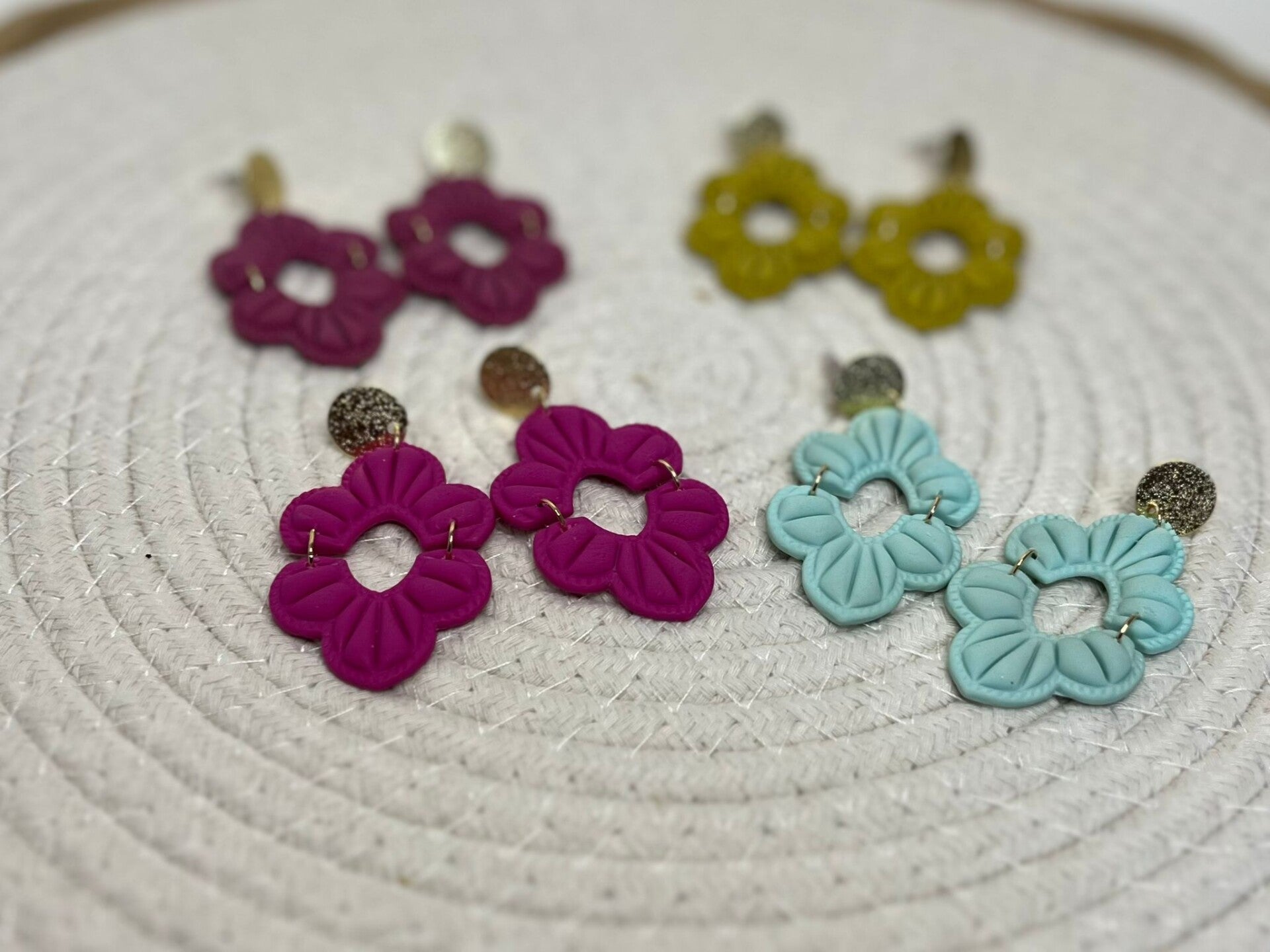 Zenya statement oorbellen β Handgemaakte polymeerklei oorbellen met verguld gouden oorsteker β Lichtgewicht dames sieraden in lime, magenta, roze en mint