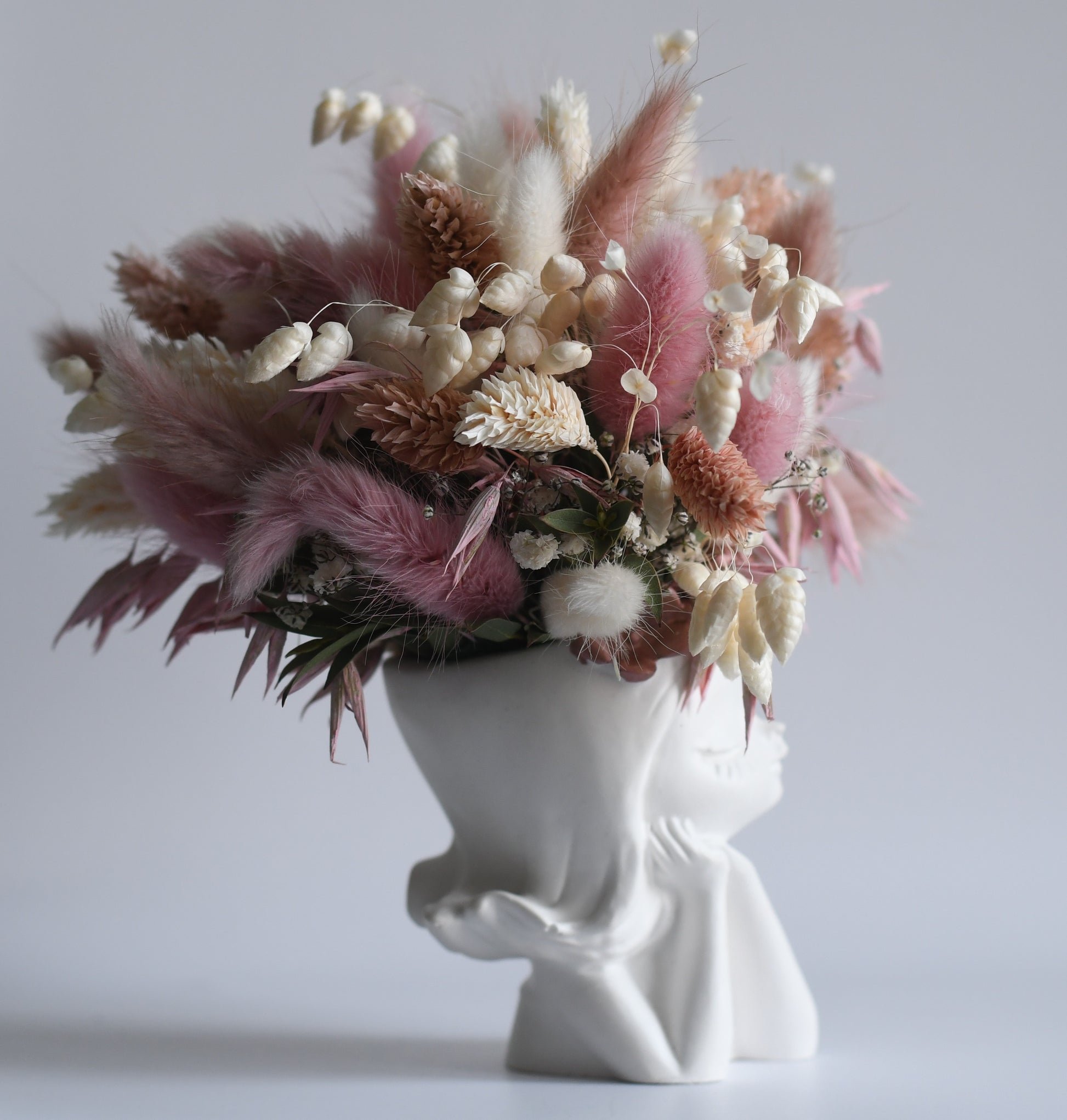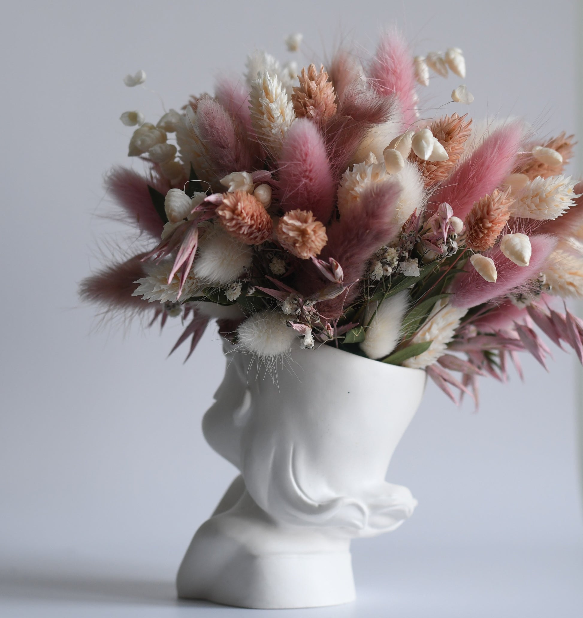 Daarna wordt elk stuk gevuld met zorgvuldig samengestelde droogbloemen vanuit Ninelle’s concept.