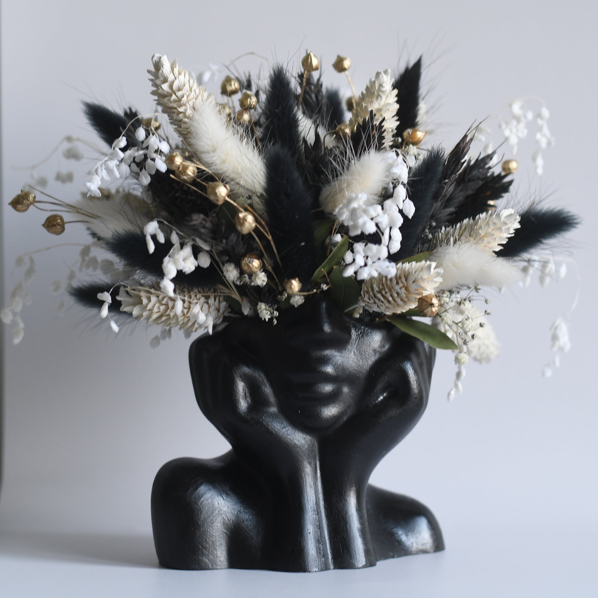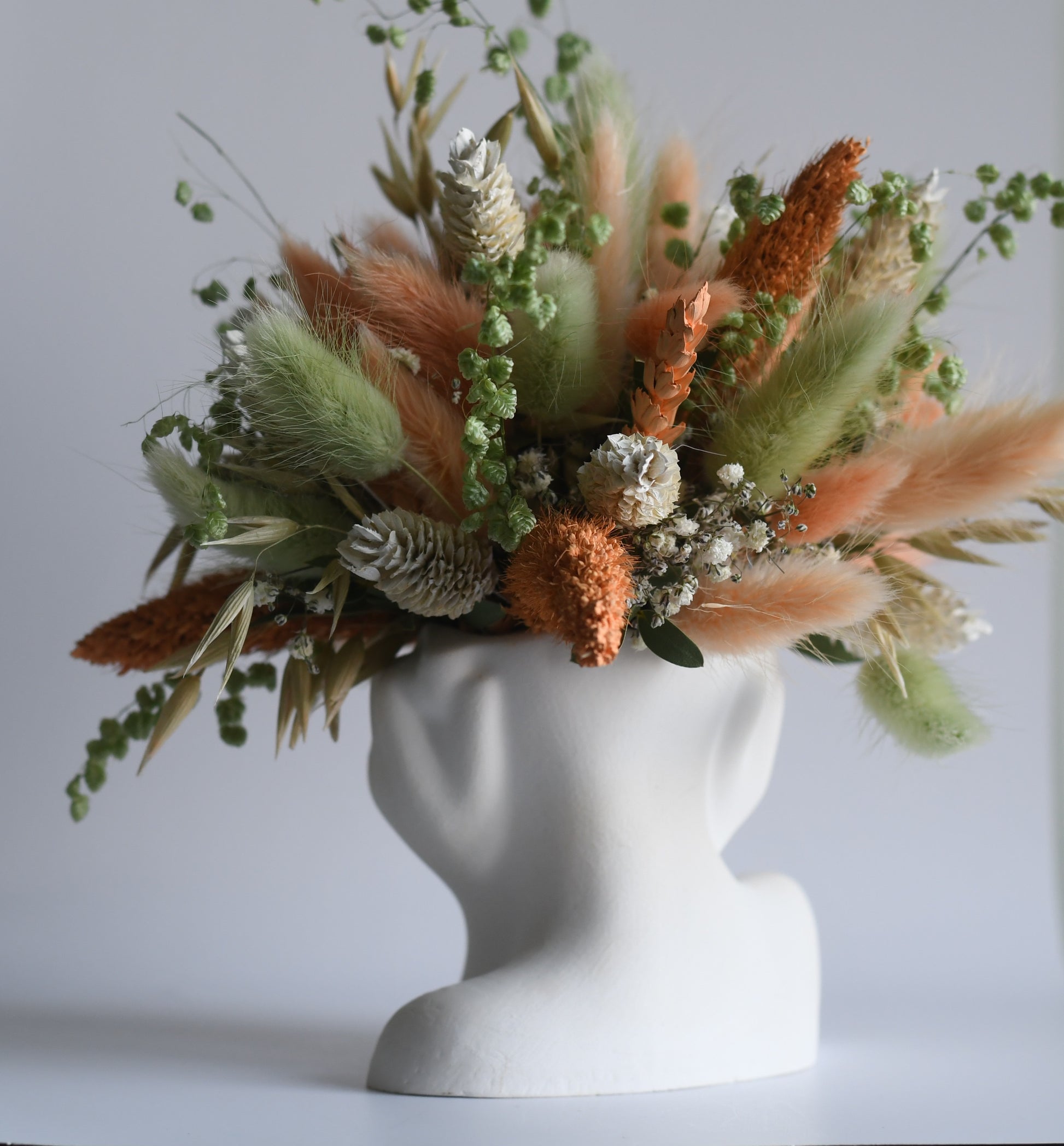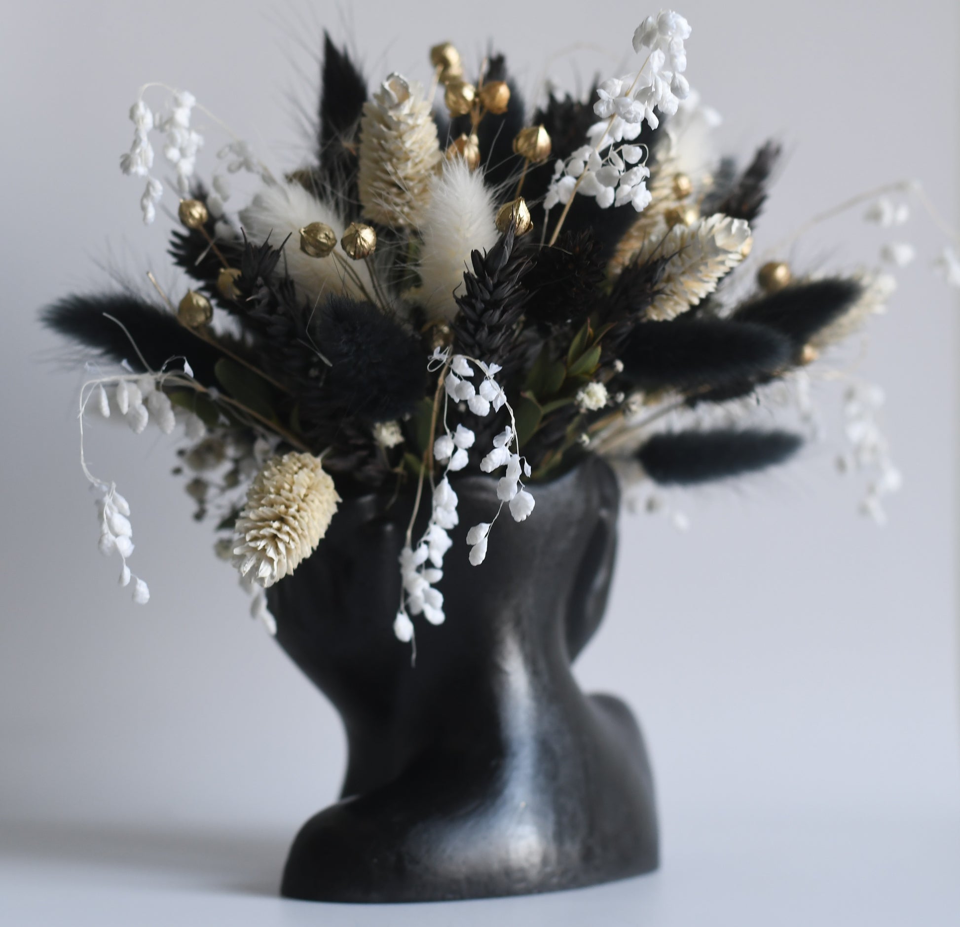 Daarna wordt het gevuld met zorgvuldig samengestelde droogbloemen vanuit Ninelle’s concept.